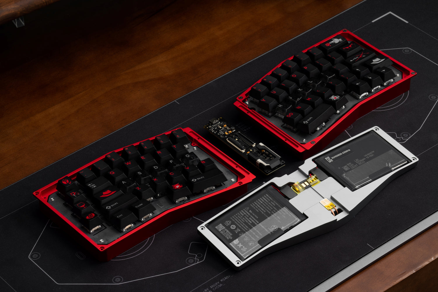 - PCB: 1.2mm 4-layer hotswap PCB with cutouts, with left and right side separated, PCB lighting and in-switch LEDs configurable via Angry Miao DIY site